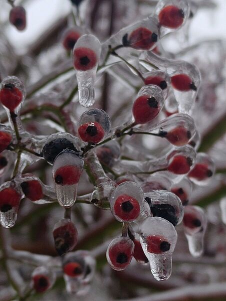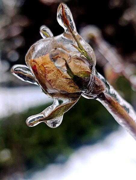 Попри свою небезпеку, ожеледь надає лісу особливої, майже казкової краси. Крони дерев, вкриті прозорим льодом, виблискують на сонці, кожна гілка й брунька набувають чітких, скульптурних форм. Лід ніби консервує мить, підкреслюючи витончену архітектуру рослин і природну гармонію зимового лісу. Такі пейзажі вражають своєю тишею, крихкою красою та створюють відчуття нереальності, коли природа постає водночас величною й беззахисною.