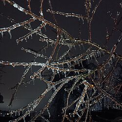 - слабкий або помірний вітер, що сприяє налипанню льоду на крону дерев.
